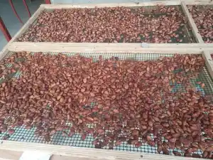 Cette étape est très importante car il sera indispensable de trier toutes les fèves de cacao moisies qui pourraient rendre le cacao très amère, voir même invendable. Il faudra aussi enlever les fèves de cacao germées. Celles-ci seront récupérées afin de pouvoir les replanter et faire de nouveau cacaoyer afin de régénérer les arbres vieillissants ou malades.